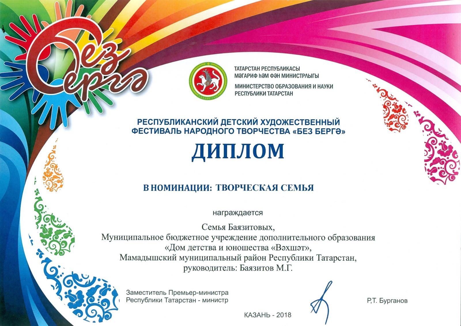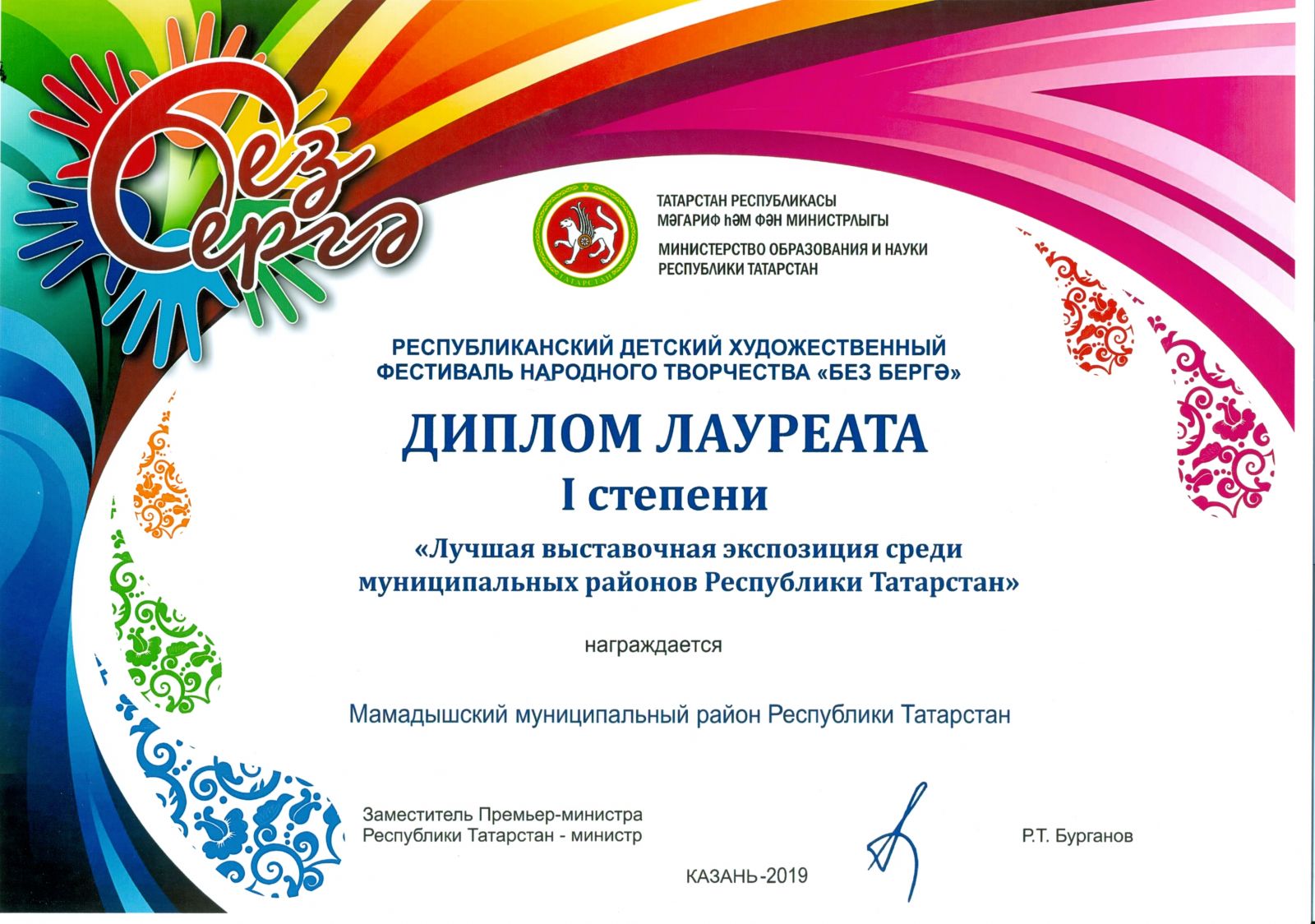 В фестивале принял участие и наш Мамадышский муниципальный район. Мы были награждены дипломами в номинациях «Хореография», «Творческая семья», «Лучшая выставочная экспозиция среди муниципальных районов РТ». Поздравляем наших участников и желаем им дальнейших успехов в творчестве!!!!!