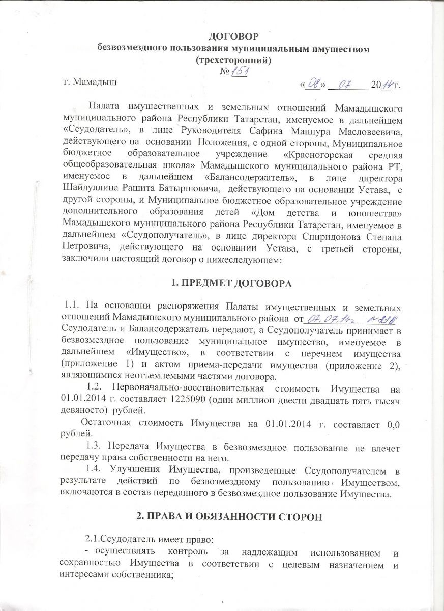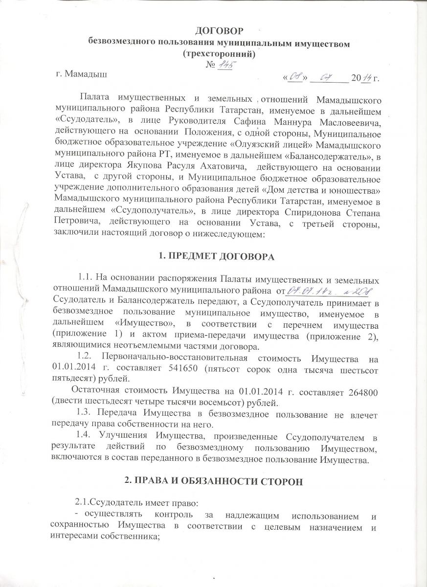 Договор "центр образования Лицей №2 им.ак. К.А.Валиева"