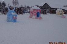 Укучылар бик тырышып кардан төрле сыннар ясадылар. Алар мәктәбебезгә яңа ел рухы биреп тора.
