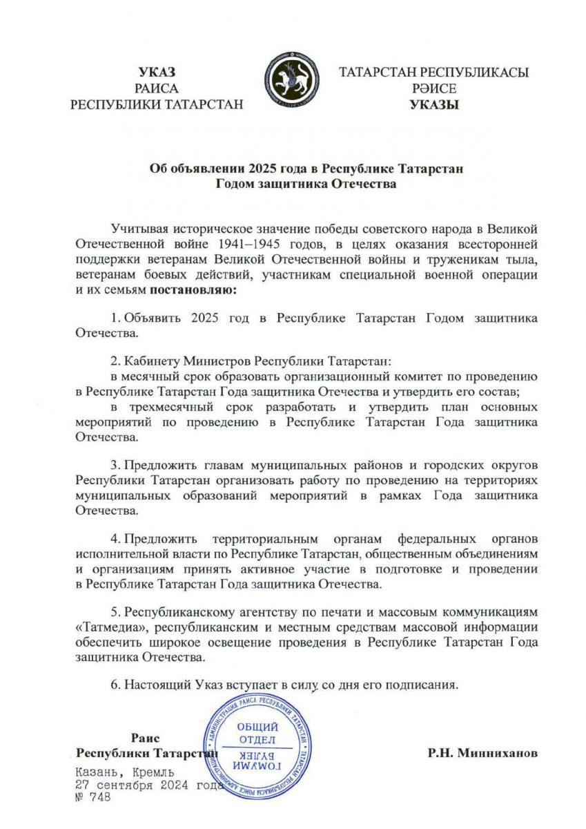 Президент РФ Владимир Путин объявил 2025 год Годом защитника Отечества. Это решение имеет особую значимость в преддверии празднования 80-летия победы в Великой Отечественной войне.