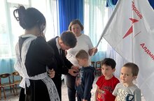 К ребятам пришли в гости, их старшие наставники — участники Движения Первых. Они вручили дошкольникам значки «Барсики»