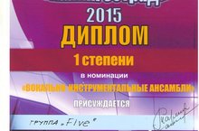 Рок-группа «Five» Центра детского творчества 23 февраля приняла участие в республиканском конкурсе «Зимняя эстрада-2015» в г. Зеленодольск. Ребята представили песни «365» и «Прости», автор которых Зарипов Р.Р., руководитель коллектива.
