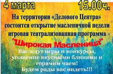 4 марта в 15 часов пройдет театрализованная программа "Широкая масленица".