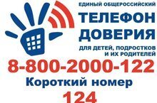 8 800 2000 122 или 124 - единый общероссийский номер детского телефона доверия - просто позвони в трудную минуту. Служба детского телефона доверия работает круглосуточно, анонимно и бесплатно, с домашнего и мобильного телефонов. Если линия занята, позвони в другое время. Телефон доверия открыт для каждого человека. Не имеет значения возраст звонящего, место жительства, состояние здоровья. Любой человек имеет право быть принятым, выслушанным и получить помощь. Будь настойчив в решении своих проблем. -