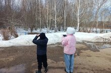 Бүген башлангыч сыйныф укучылары белән йөреп кердек. Безнең йөрүнең максаты бинокль аша кошларны күзәтү иде, алар нишлиләр соң? Яз, җылы. Без сезнең белән җылы көннәр белән ләззәтләнәбез. Ә кошлар? Сез ничек уйлыйсыз? Әлбәттә, кошлар үз балаларына оя коралар - бишек ясыйлар! Безнең мәктәптән ерак түгел, тирәкләргә каргалар сыенган. Алар тегендә-монда йөриләр, һәркайсының томшыгында бер чыбык бар. Алар бик күп уңайлы оялар төзегәннәр, тиздән үз нәселләрен чыгарачаклар һәм күктә биек очачак яшь каргалар.