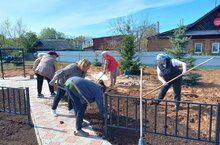 Вооружившись необходимым инвентарем, ребята с удовольствием приводили в порядок территорию.