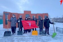 Трудовой патриотический десант проходит в рамках акции "Снежный десант". Ребята расчистили дорожку к памятнику, убирали снег на площадке, очистили мемориальную плиту, поправили цветы.