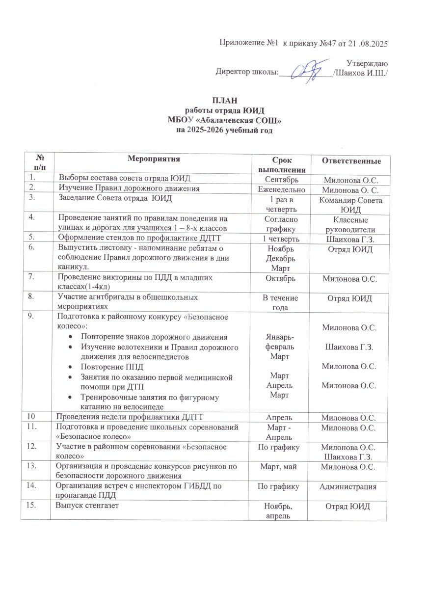 4. План работы отряда ЮИД на 2025-2026 учебный год
