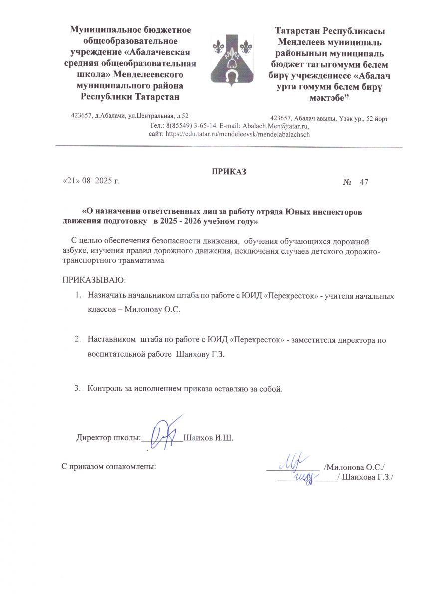 3. Приказ о назначении ответственных лиц за работу отряда ЮИД на 2025-2026 учебный год