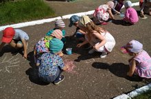 21 августа в МБДОУ "Бизякинский детский сад "Лейсан" прошел праздник рисунка на асфальте «Я рисую Мир!». Воспитатель группы Гилязова Л.М. провела вступительную беседу о мире на земле и перед детьми поставила задачу : каким они представляют мир. Ребята с большим удовольствием принялись за дело. Дети оказались большими фантазёрами и очень творчески подошли к заданию, и через несколько минут на асфальте перед зданием детским садом появилась радуга красок. Юные художники рисовали огромное солнце, мир, голубей, сказочных героев популярных мультфильмов и принцесс.