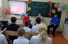 4 октября, накануне Дня учителя, в МБОУ "Брюшлинская ООШ" состоялась Классная встреча с учителем начальных классов на заслуженном отдыхе Алевтиной Ивановной Никитиной. Ведущие встречи - лидеры Движения Первых Ахмадуллина Зарина и Попов Пётр задавали ей интересующие детей вопросы. Алевтина Ивановна - профессионал своего дела, любящая свою работу и детей. Она всегда учила нас быть добрыми, справедливыми и ответственными. Алевтина Ивановна поделилась воспоминаниями о своем детстве, о первых учителях, как впервые переступила порог школы в роли учителя. Алевтина Ивановна пожелала нам мирного неба над головой, успехов в жизни и школе. А мы желаем ей крепкого здоровья и успехов во всем!