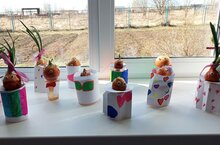 Пока за окном холода наши юннаты вырастили зеленый лук и участвовали в "луковой гонке". Сегодня определили самый лохматый лук, самы весёлый лук, самый сонный лук. В завершении мероприятия каждая луковка получила свой персональный бумажный наряд