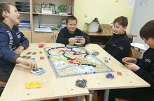 Дети с азартом играли в различные настольные игры. Участники активно соревновались и взаимодействовали, создавая дружескую и веселую атмосферу.