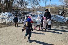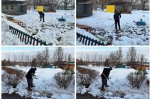 Әтиләр Советы көче белән балалар бакчасы территориясендә кар җәйделәр.