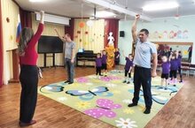 В преддверии Международного дня Отца наши папы приняли активное участие в утренней зарядке с детьми.