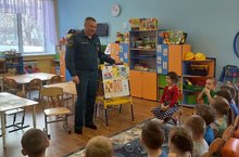 В рамках проекта "Неделя пап" сегодня папа из средней группы "Полянка" - Тарасов Сергей Анатольевич провёл для детей увлекательную беседу о жизни пожарных.