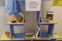 В фойе детского сада организована выствка поделок " Золотые руки бабушки"