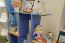 В рамках проекта "Неделя мам" в фойе детского сада оформили выставку "Моя мама-рукодельница".