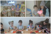 В группе раннего возраста «Родничок» воспитатели провели мероприятие, приуроченное к празднику – ребята сделали открытки в форме сердечек и подарили их своим близким.