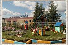 На центральной клумбе детского сада появилось татарское подворье - сказка, сотворенная золотыми руками сотрудников детского сада.