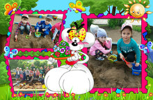Мы в песочнице играем,Строим домик из песка,Увлеклись, не замечаем,Что носки полны песка.Принесли воды в ведёрке,Чтобы не сломался дом,Красовался на пригорке,Мы его водой польём. -