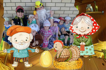 Как же любят малыши младших групп "Ладушки" и "Почемучки" послушать сказки. А тут к ним на прогулку пришли "настоящие" Дед и Баба (в лице педагогов Шакиной М.В. и Курбановой А.Х.) из сказки про Курочку Рябу...