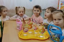 "Ладушки" ның икенче кече төркемендә "Минем тәрбиячем" рәсемнәр күргәзмәсе оештырыла. Күргәзмәдә балалар, шулай ук ата-аналар башкарган эшләр тәкъдим ителде. Бу бик эчкерсез эш, чөнки балалар башкача эшли алмый: алар дөньяны, тирә-юньдәгеләрне ничек күрүләрен күрсәтәләр.