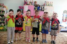 В преддверии столетия со дня образования пионерской организации в средней группе «Пчёлка» прошло тематическое занятие. Утро началось с беседы, где дети узнали об истории создания пионерской организации, кто такие пионеры и какую роль они сыграли в истории нашей страны. Познакомились ребята с пионерскими атрибутами, призывами и пионерскими символами. Дети не только узнали, кто такой пионер, но и примерили пионерский галстук.