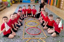 В канун праздника Дня космонавтики в подготовительных группах прошло спортивное развлечение " Школа космонавтов". Соревновались два космических отряда: экипаж ракеты Союз и экипаж ракеты Восток!