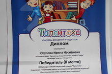 Воспитатель МБДОУ «Детский сад № 2 «Сказка» Юсупова И.И. стала победителем XXXIV Всероссийского творческого конкурса ...