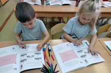 Беренче Хәрәкәт программасы буенча эш кысаларында әзерлек төркеме шәкертләре эш дәфтәрендә эшләргә өйрәнәләр.....