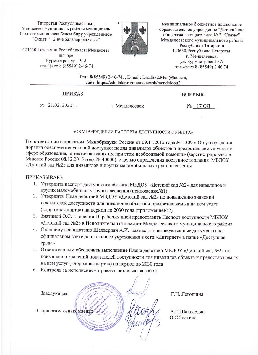 Условия организации обучения и воспитания детей-инвалидов и детей с ограниченными возможностями здоровья в муниципальном бюджетном дошкольном образовательном учреждении "Детский сад общеразвивающего вида №2 "Сказка" Менделеевского муниципального района Республики Татарстан