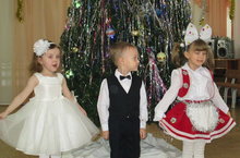 Новогоднее представление разыграли педагоги и дети «Золотой рыбки» у красавицы ёлочки в нарядно украшенном зале...