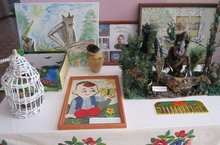 8 нче балалар бакчасында әти-әниләр белән берлектә Г.Тукай һәм М.Җәлилнең әсәрләренә багышлаган сынлы һәм рәсем сәнгатьләреннән кургәзмә оештырылды.