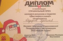 "Дед Мороз в кино"/" Кыш Бабай кинода" 21.12.2021 Зима - волшебное время года! Время чудес и сюрпризов. Киноцентр "Юность", в преддверии новогодних праздников провел конкурс рисунков "Дед Мороз в кино". Наши ребята Федров Ярослав 1 класс, Егорова Лиза 1 класс, Ефимова Лиза 1 класс и Махмудова Зарина 3 класс приняли активное участие в конкурсе , получили дипломы и сладкие призы! Спасибо кинотеатру " Юность" за организацию конкурса!/ Кыш-елның тылсымлы чоры! Могҗизалар һәм сюрпризлар вакыты."Яшьлек" киноүзәге, Яңа ел бәйрәмнәре алдыннан, "Кыш Бабай кино"дип исемләнгән рәсем конкурсы үткәрде. Безнең егетләр-1 нче сыйныф укучылары Федоров Ярослав, Егорова Лиза 1 нче сыйныф, Ефимова Лиза 1 нче сыйныф һәм Махмудова Зарина 3 нче сыйныф укучылары конкурста актив катнаштылар, дипломнар һәм татлы призлар алдылар. "Юность"кинотеатрына конкурсны оештырган өчен рәхмәт!