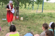 На летней площадке Енабердинской библиотеки в рамках Межрегиональной сетевой акции "Время читать Романовского" прошли громкие чтения на лужайке «Читаем Романовского» для воспитанников летнего оздоровительного лагеря. Современные люди стали все реже брать в руки бумажные книги и все чаще пользуются электронными ресурсами. Чтобы вернуть интерес к печатной продукции, библиотекарь Вера Семеновна провела громкие чтения на свежем воздухе. Вниманию присутствующих были представлены русские народные сказки. Мальчишки и девчонки с удовольствием погрузились в мир сказок. Весёлые и радостные лица ребят, отличное настроение и желание снова прийти в библиотеку – результат проведенного мероприятия.