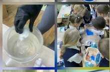 Сегодня в 3 классе на уроке по функциональной грамотности ребята показывали опыты своим одноклассникам: надувание шарика, живые червячки, разноцветная радуга, извержение вулкана.
