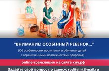 Уважаемые родители! Приглашаем Вас на республиканское родительское Интернет-собрание "Внимание! Особенный ребенок..." с участием Министра образования и науки Рт Бурганова Р.Т., которое состоится 17 мая с 10-30 до 12-00ч. Онлайн-трансляция на сайте киу.рф....