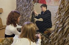 Научный сотрудник музея,Екатерина Борисовна, провела увлекательное мероприятие для учащихся 8 класса по росписи плитки.М