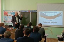 Сегодня в гимназии прошёл парламентский урок на тему «Выбираем будущее!» с участием депутата фракции (депутатского объединения) "ЕДИНАЯ РОССИЯ" Зарипова Марата Мисхатовича.