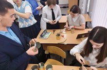 9 класс МБОУ "Гимназия №1" принял участие в акции "Окопная свеча" Ребята использовали банки из вторичного сырья, обработали края и набили гофрой, чтобы потом залить воск и вставить фитиль...