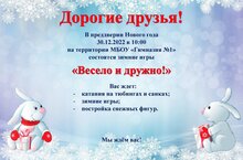 В преддверии Нового года 30.12.2022 г. в 10:00 часов на территории МБОУ "Гимназия №1" состоятся зимние игры "Весело и дружно"...