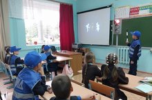 Члены отряда ЮИД"Непоседы" в рамках акции по безопасности дорожного движения провели с обучающимися начального звена тематический урок...