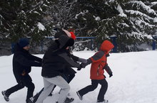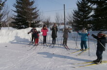 Ученики начальной школы совместно со своими классными руководителями на лыжах любовались зимним пейзажем...