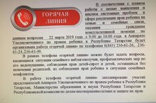 "Горячая линия" 19.03.2019В соответствии с планом работы с целью выявления и анализа системных проблем в сфере реализации прав ребенка на семью и семейные связи, оказания гражданам консультативной помощи по данным вопросам 22 марта 2019 года с 9.00 до 16.00 года в Аппарате Уполномоченного по правам ребенка в Республике Татарстан будет организована работа «горячей линии» по телефонам 8(843) 236-61-26, 236-61-24, 236-61-49...