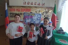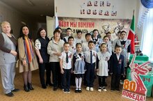 Школьники выступили с двумя музыкальными композициями " Солдатта булган дигэн"и "Нам нужна одна Победы" под руководством учителей начальной школы Шарафутдиновой С. Н., Каримовой Г. Г. и учителя русского языка Каракеян Э. С. -