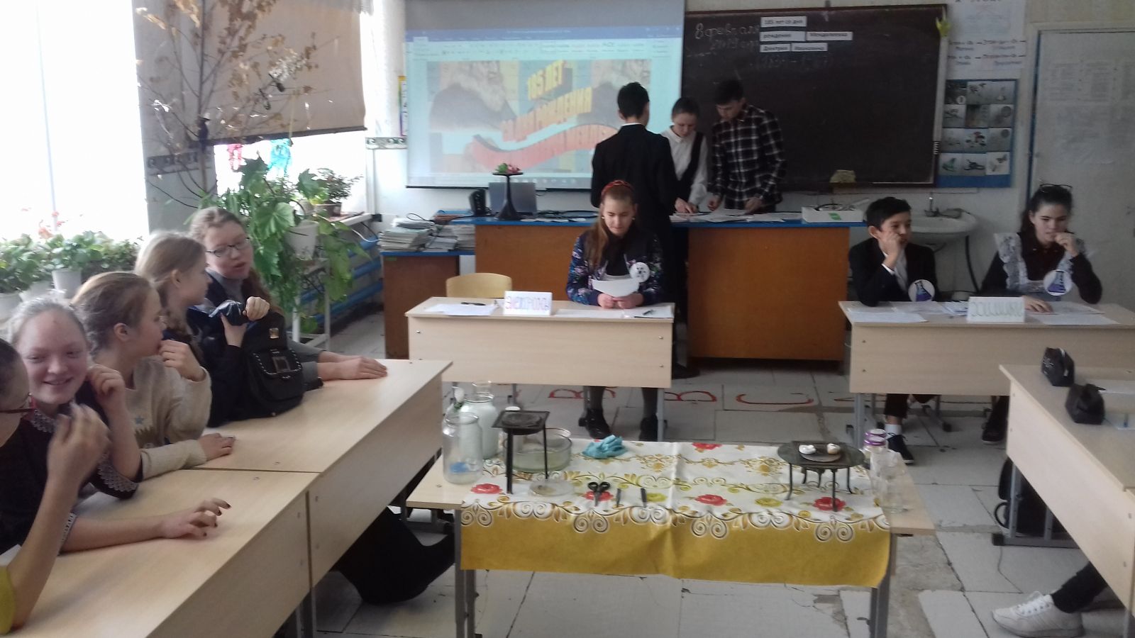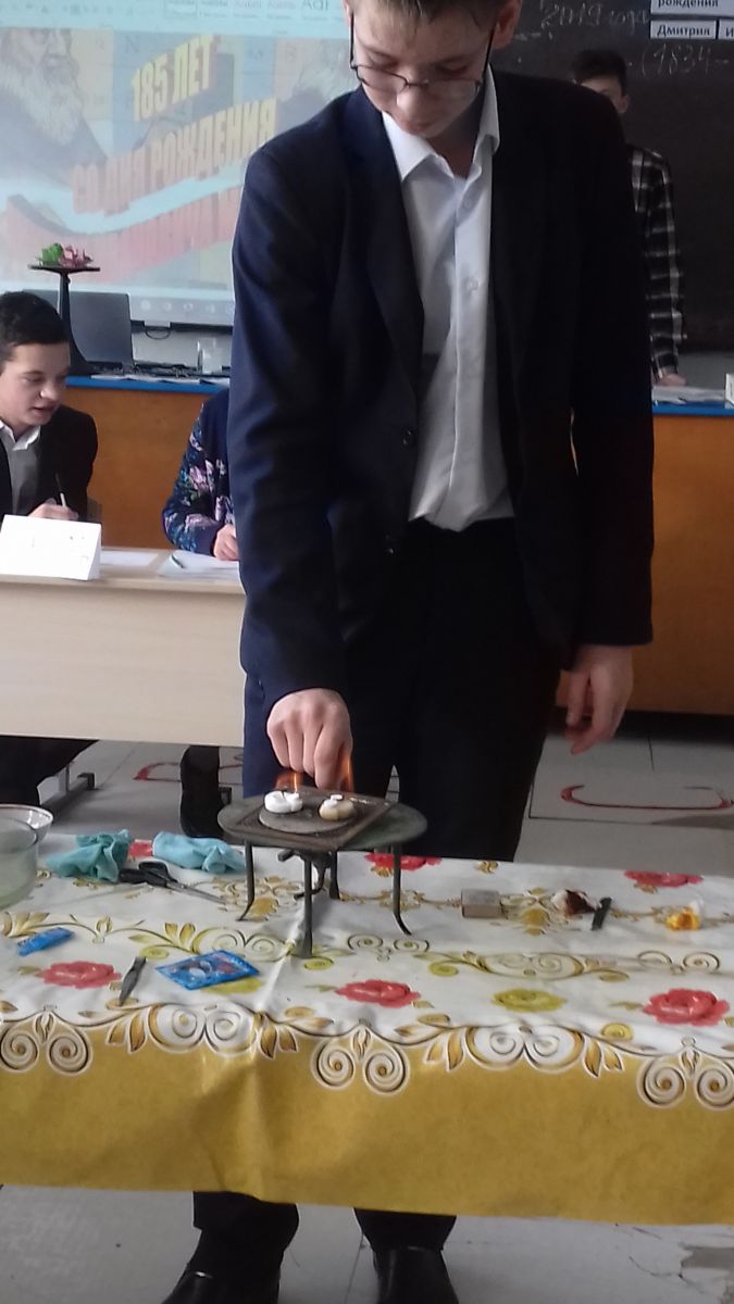 Опубликовано: 09.02.20196 февраля 2019 года было проведено мероприятие посвященное 185-летию со дня рождения Д.И.Менделеева. В нашей школе стало традицией посвящать 8-классников в химики. Учащиеся 8го класса готовились к этому мероприятию: изучали периодическую систему химических элементов, создали команды. Назвали их химическими терминами. Изучали биографию Д.И.Менделеева. Такие мероприятия всегда проходят интересно, при активном участии детей в решении кроссвордов, разного типа конкурсных заданий, в ответах на вопросы викторины. Мероприятие сопровождалось занимательными опытами и исполнением традиционной песни на химическую тему. Учащиеся 8 класса пополнили ряды химиков Монашевской школы. ”Мы будем продолңателями дел Д.И.Менделеева,”- говорят молодые химики.