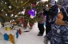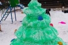 Идею сделать заранее елочку из снега во дворе детского сада придумали дети