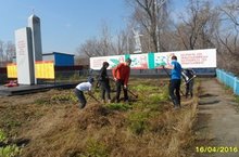 Cубботник у памятника воинам, погибшим во время войны 16.04.2016