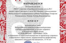Коллектив авторов во главе с учителем физической культуры Поповой Л.В. стали призерами Всероссийского конкурса социальной рекламы в области формирования культуры здорового и безопасного образа жизни «Стиль жизни – здоровье! 2024» в номинации «Социальный видеоролик по пропаганде здорового
